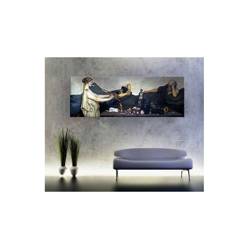 El estilo de Alma-Tadema se caracteriza por su precisión histórica y su atención al detalle. En esta reproducción de este cuadro, "Escena Pompeyana" se puede apreciar su habilidad para representar la vida cotidiana de la antigua Roma, desde la arquitectura hasta la moda y los accesorios.