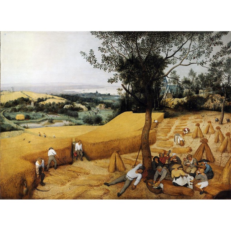 Como en muchas de sus pinturas, el foco de atención de Brueghel son los campesinos trabajando. Se destaca que algunos de ellos están comiendo, mientras otros están cosechando, una representación diacrónica tanto de la producción de comida como de su consumo.
